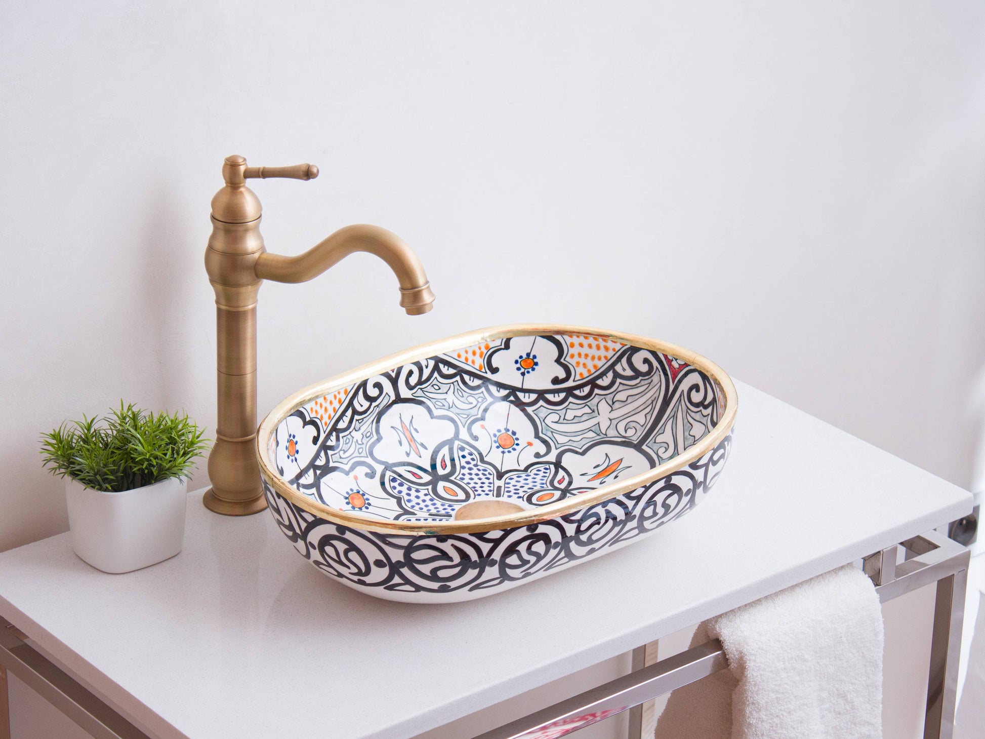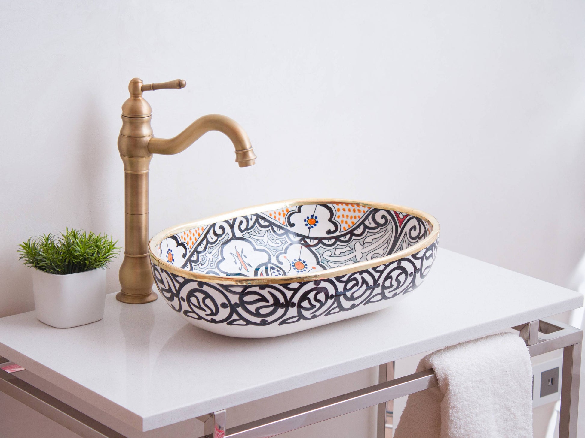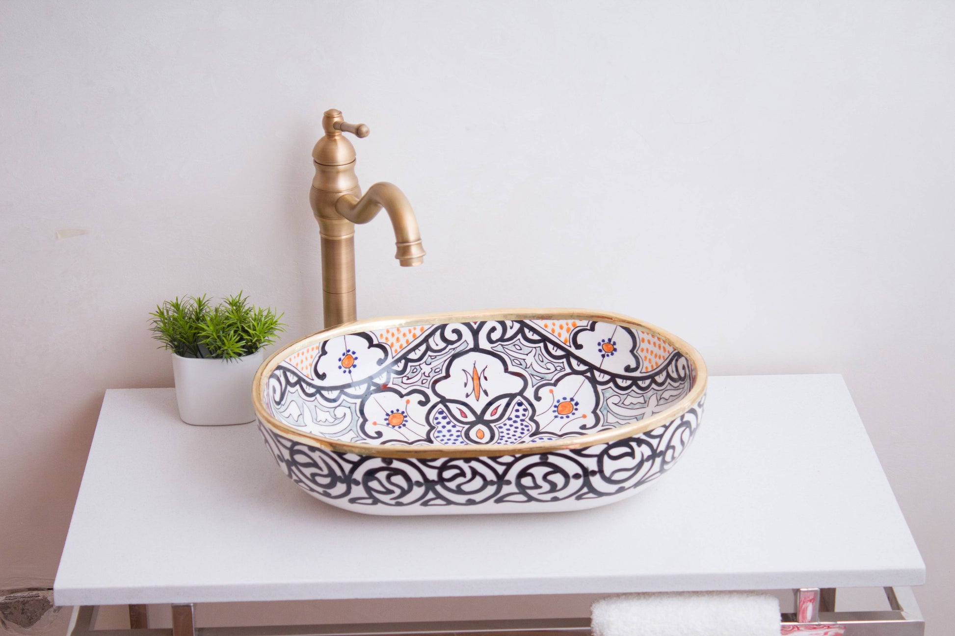الشكل البيضاوي يوفر صورة ظلية أنيقة ورشيقة مع مساحة حوض واسعة. مثالي للحمامات الفاخرة أو الطراز الفني أو التقليدية. يتناسب بشكل جميل مع صنابير النحاس أو الذهب أو الأسود اللامع.
