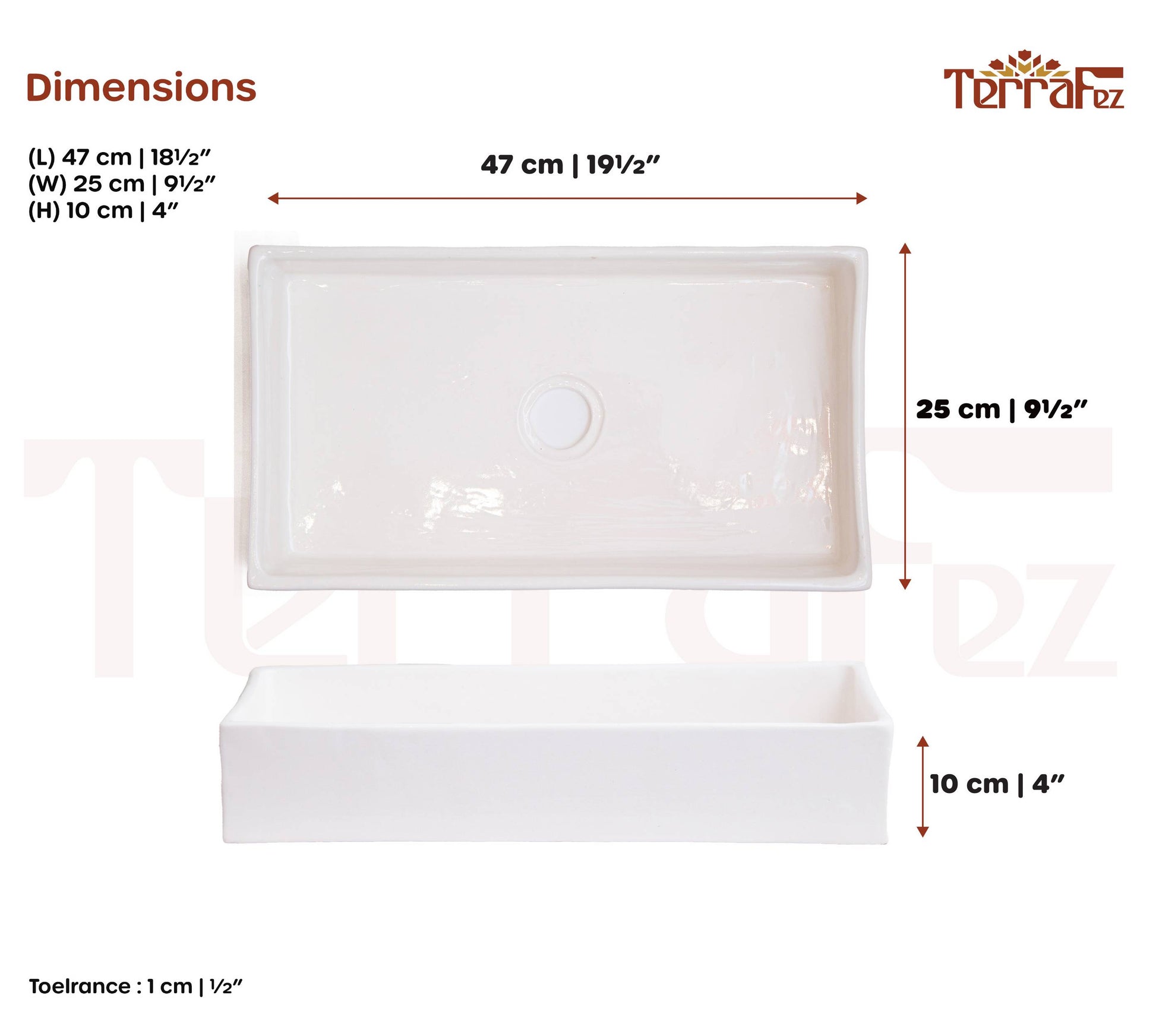 ما يجعل الصناعة اليدوية مختلفة:الأحواض المصنوعة بكميات كبيرة تفتقر إلى الاختلافات الدقيقة التي تجعل السيراميك اليدوي مميزًا. مع TerraFez، حتى هذه القطعة البسيطة لها عيوب عضوية في الطلاء والشكل تضيف الدفء والأصالة.