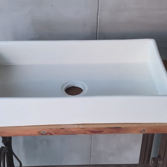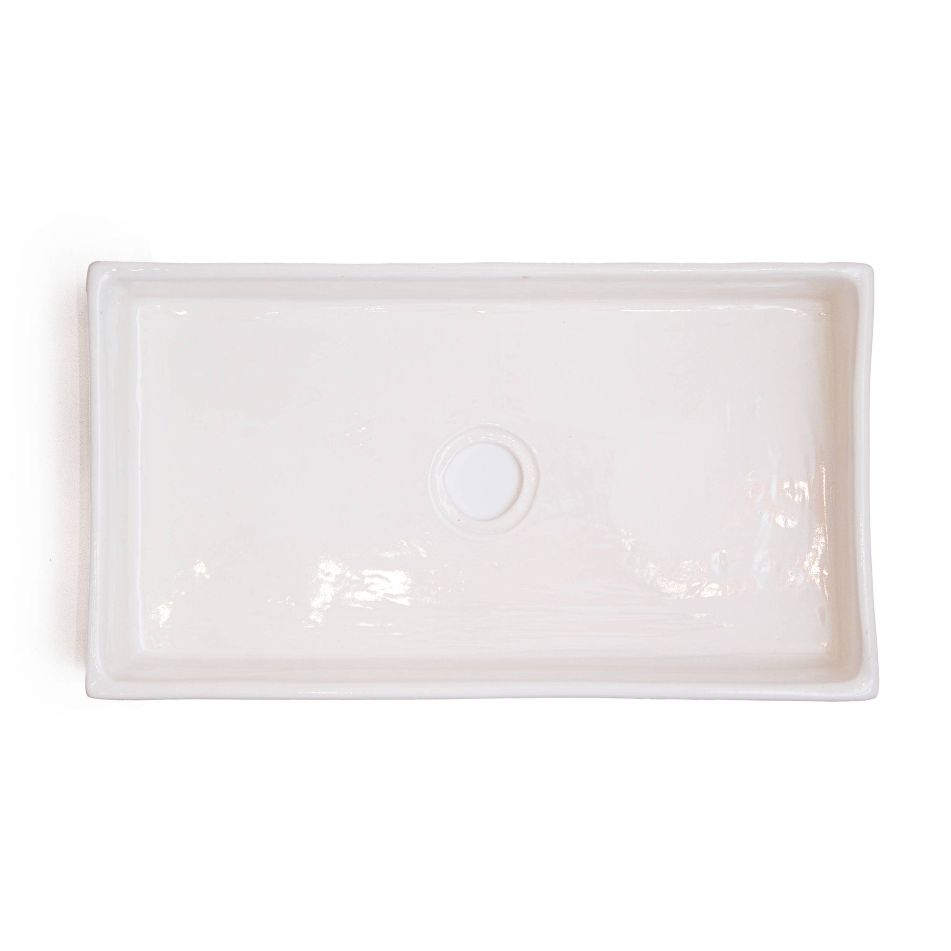 يُظهر هذا الحوض المستطيل البسيط جمال السيراميك الأبيض النقي في شكل نظيف وحديث. الأسطح الناعمة والحواف الحادة مصنوعة بعناية يدويًا، مما يخلق قطعة تحتفل بالبساطة والوظائف. أحيانًا يكون التصميم الأكثر تأثيرًا هو الأكثر تواضعًا.