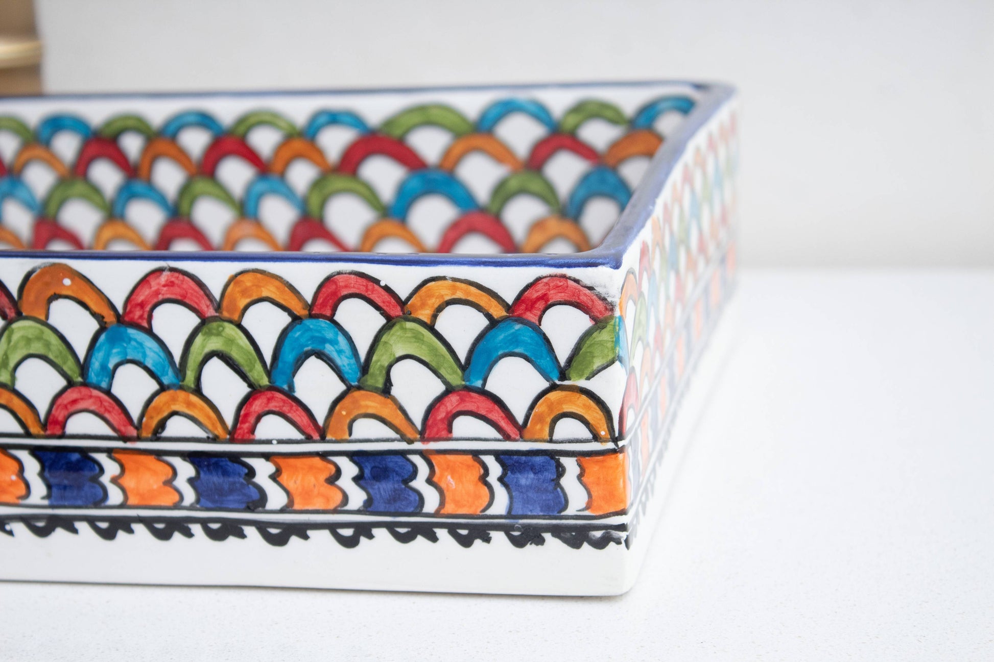 Each piece is hand-painted by our artisans in Morocco using techniques they learned from generations before them.