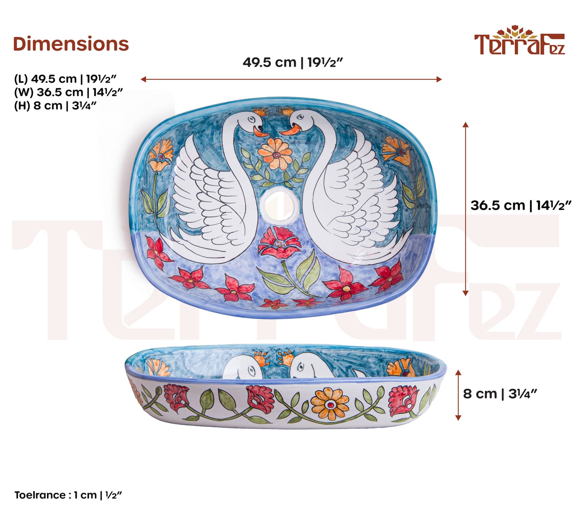 What makes handmade different:Mass-produced sinks can't achieve this level of artistic detail and narrative beauty. With TerraFez, each swan is uniquely hand-painted with individual character, making your oval sink a true masterpiece.