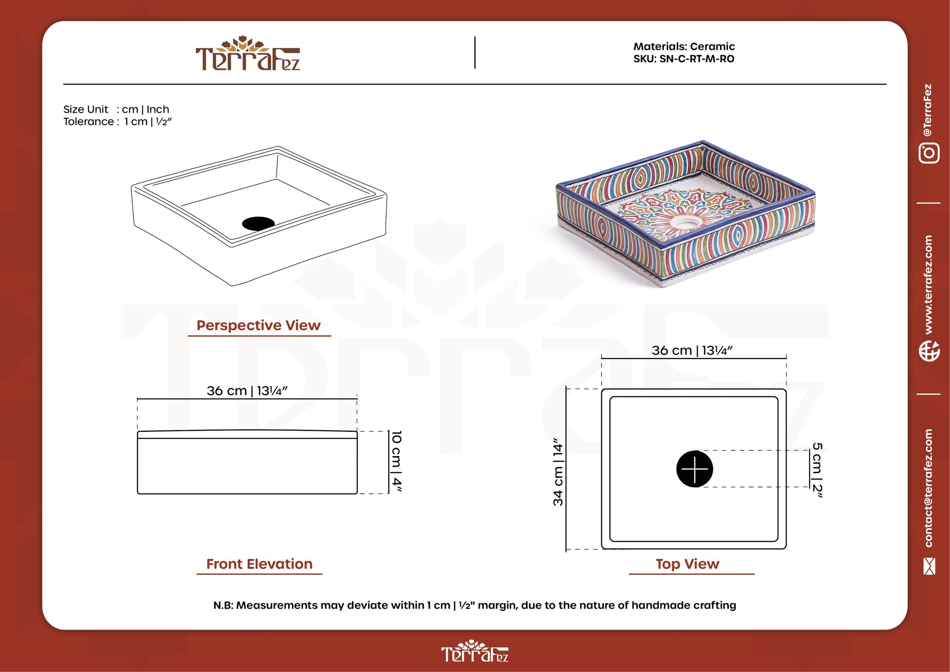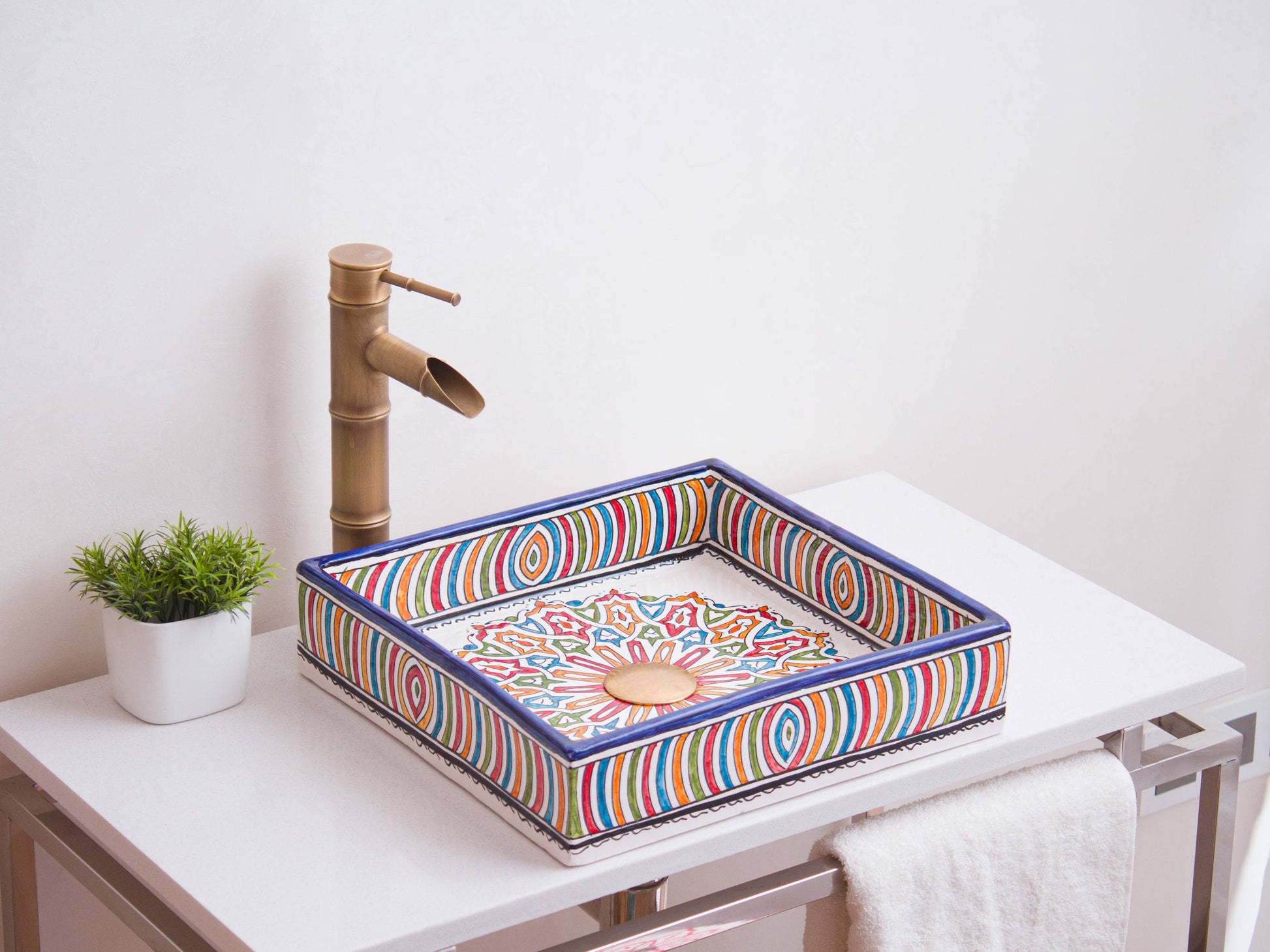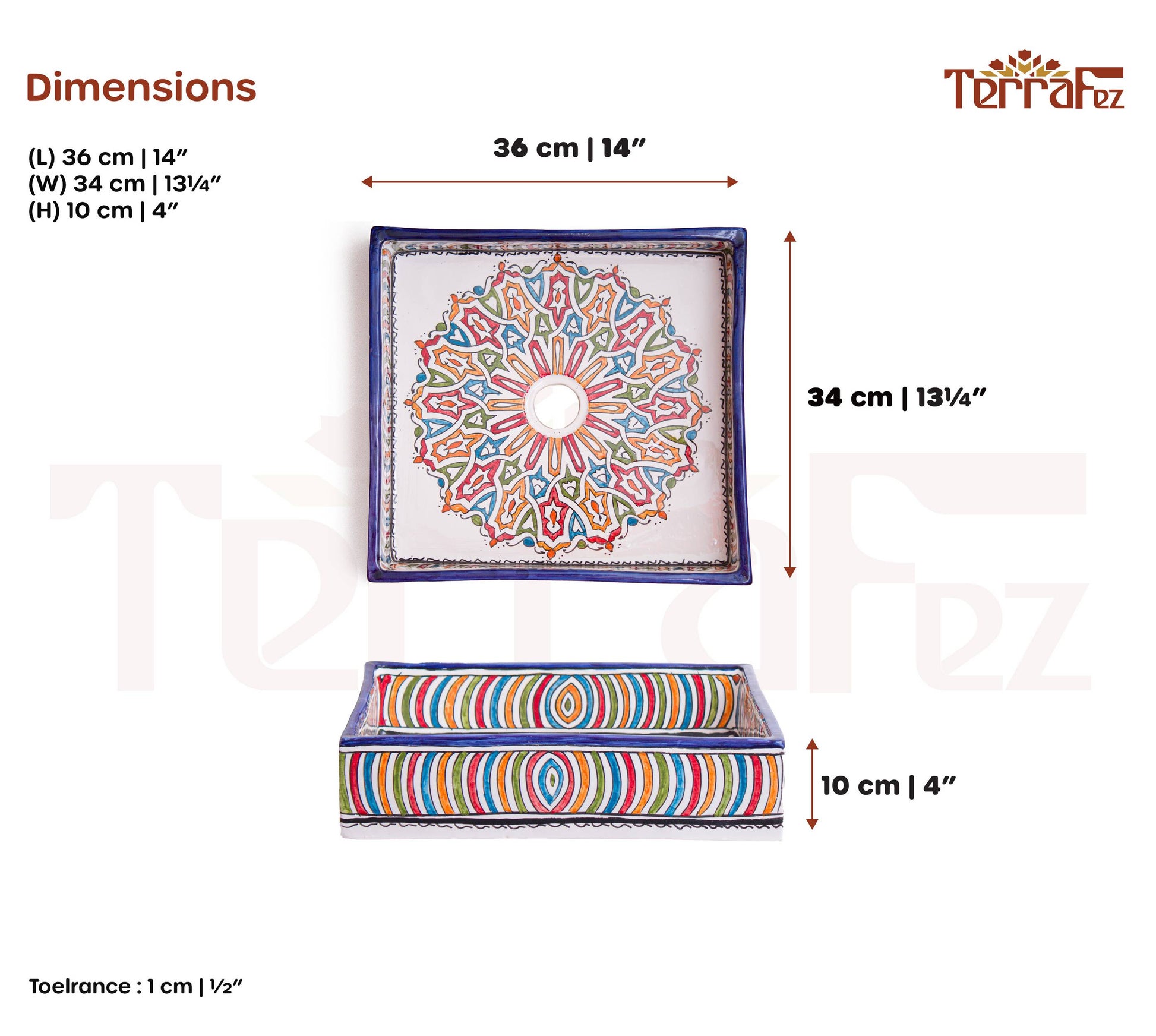 What makes handmade different:Mass-produced sinks can't achieve this level of intricate multicolored detail. With TerraFez, each ring is individually hand-painted, creating natural variations in color intensity and alignment that make this square sink truly unique.