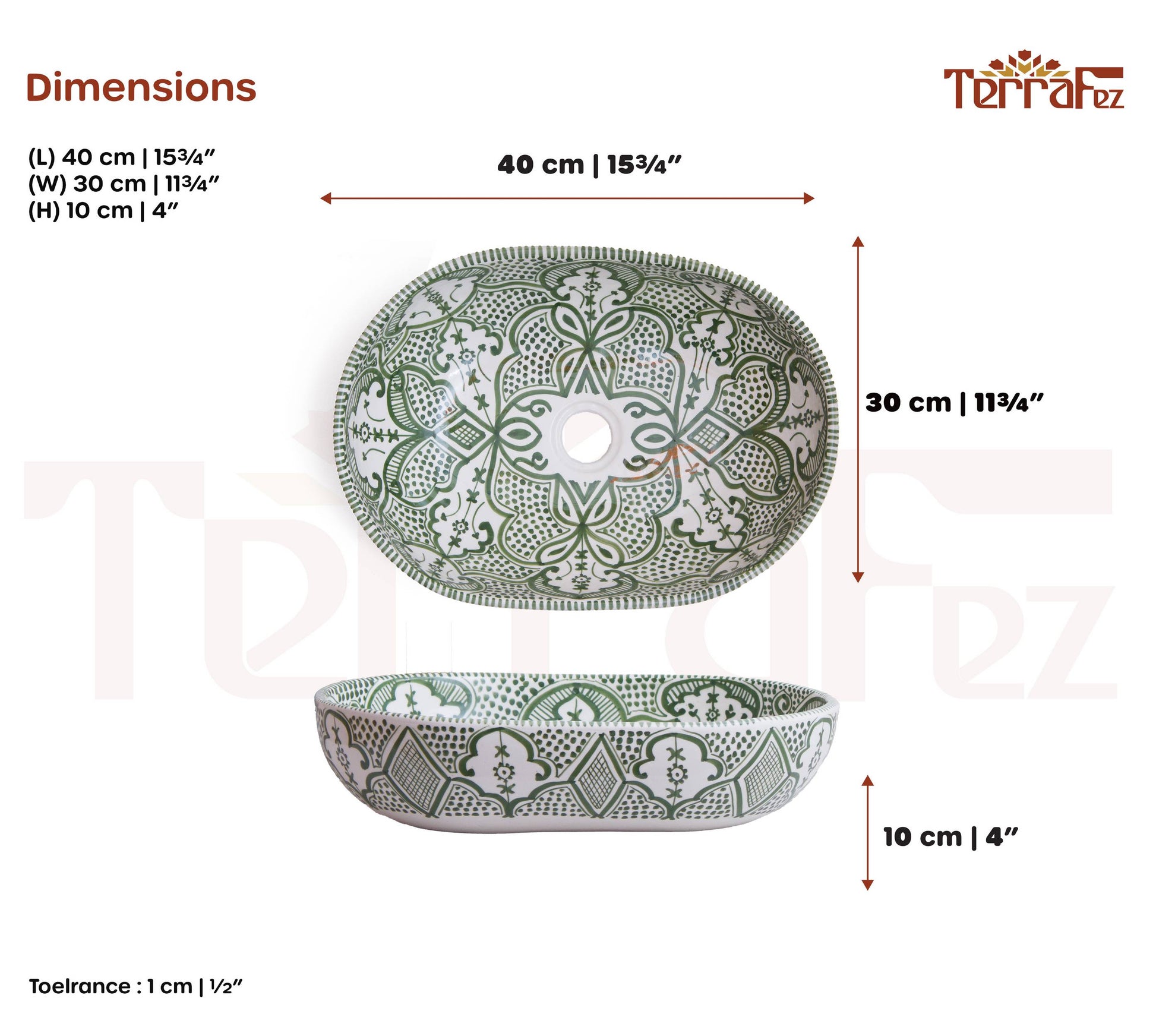 What makes handmade different:Mass-produced sinks can't capture the intricate detail of hand-painted florals and geometric patterns. With TerraFez, each flower and lattice element is carefully applied by skilled artisans, creating subtle variations that make this oval sink unique.