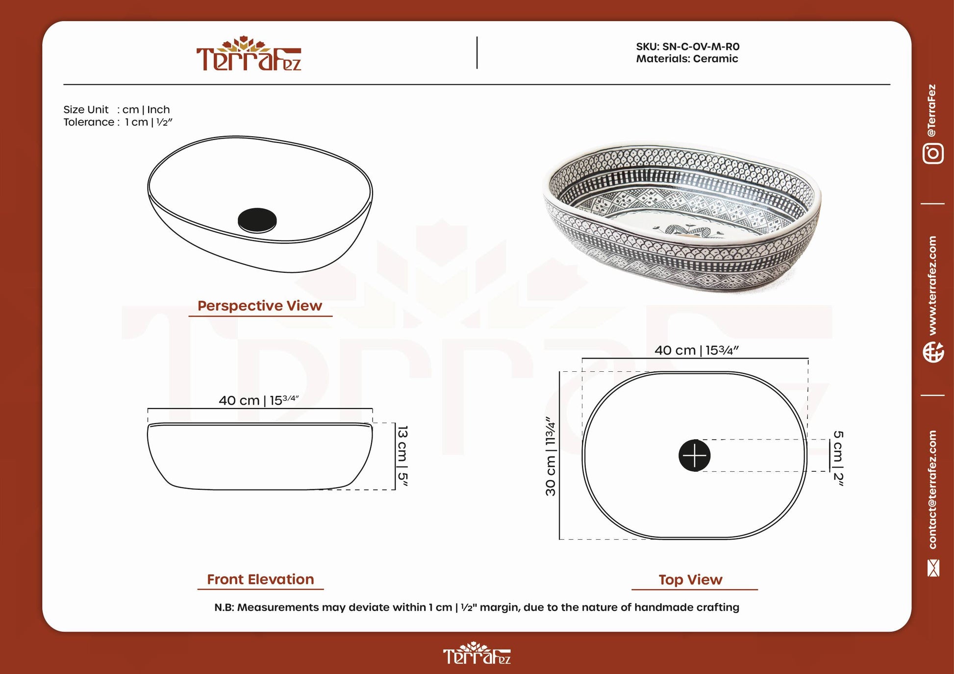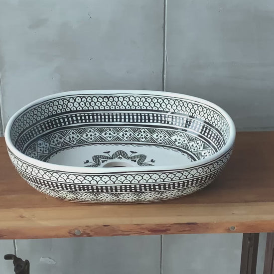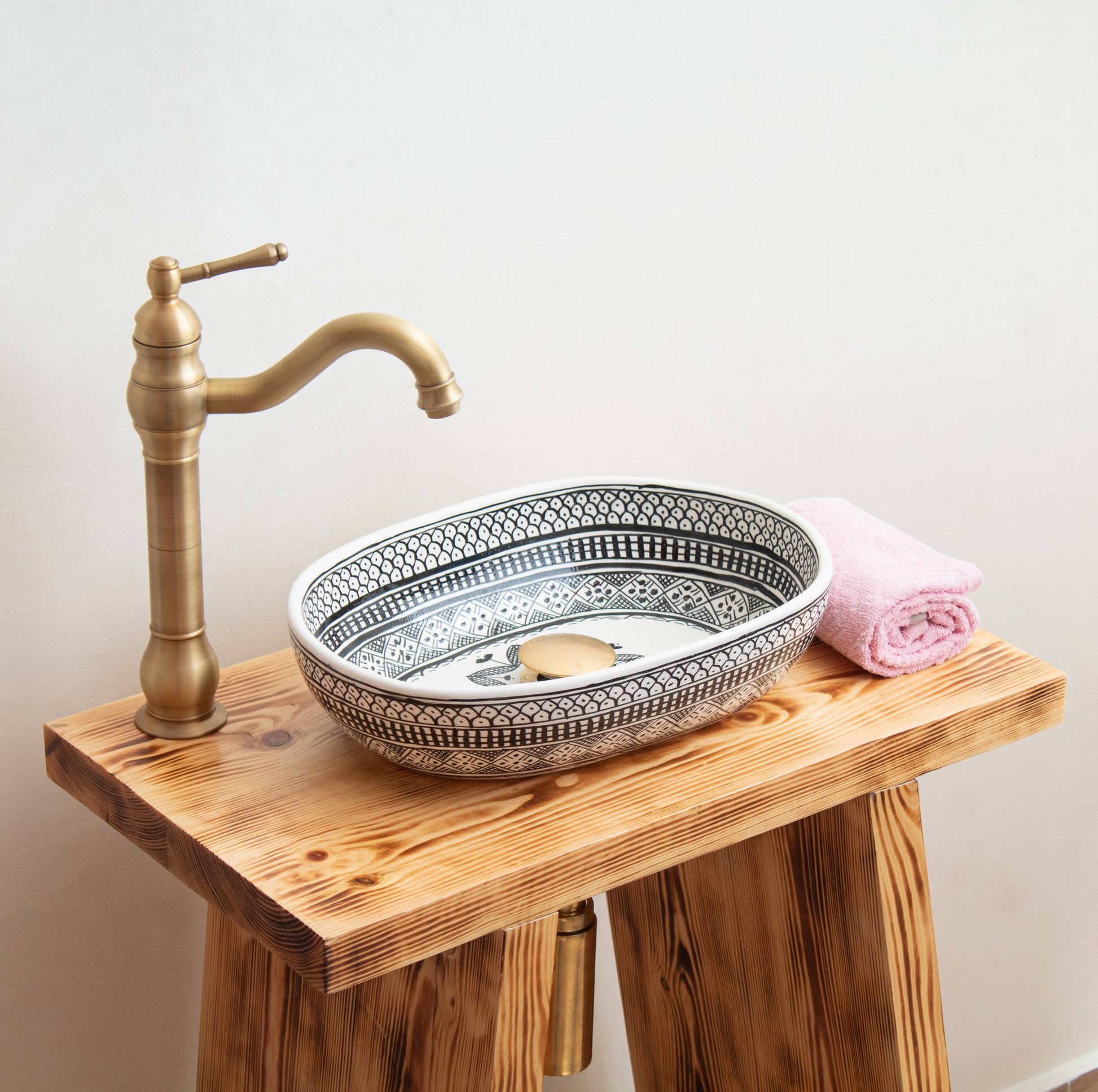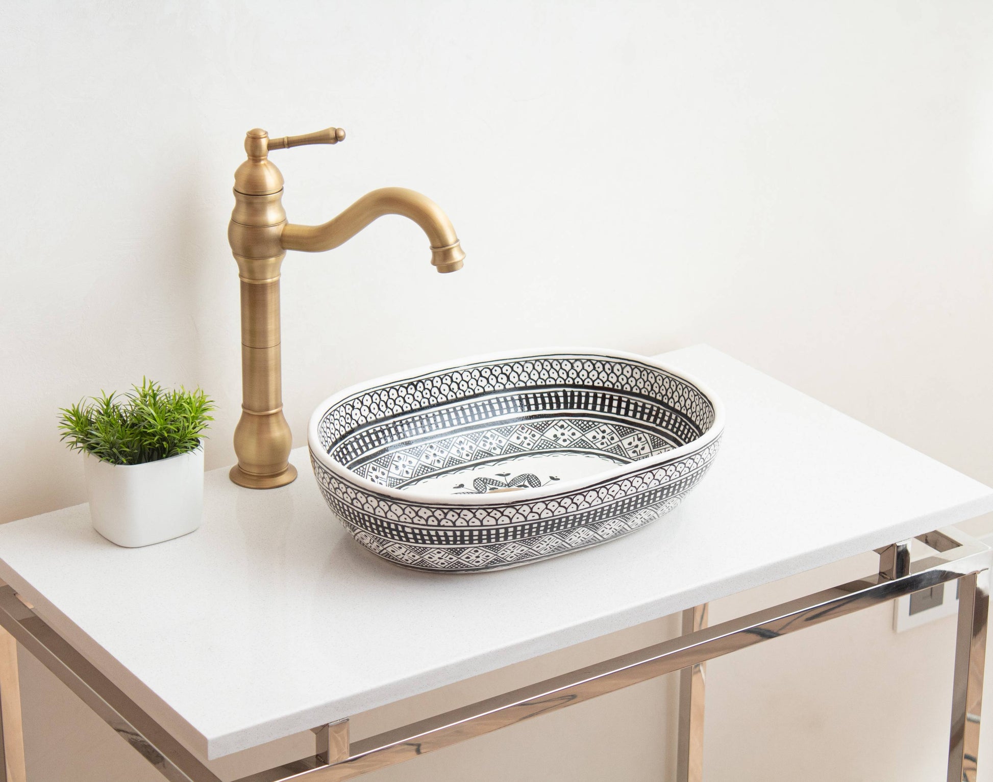 What makes handmade different:Mass-produced sinks lack the depth and precision of hand-painted geometric patterns. With TerraFez, each band and geometric element is carefully applied by hand, creating subtle variations in line weight and spacing that add character.