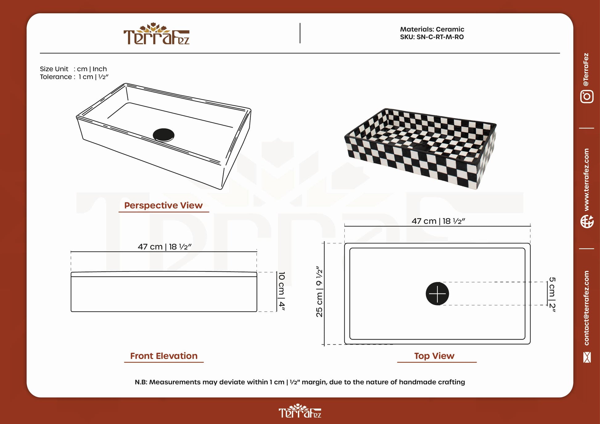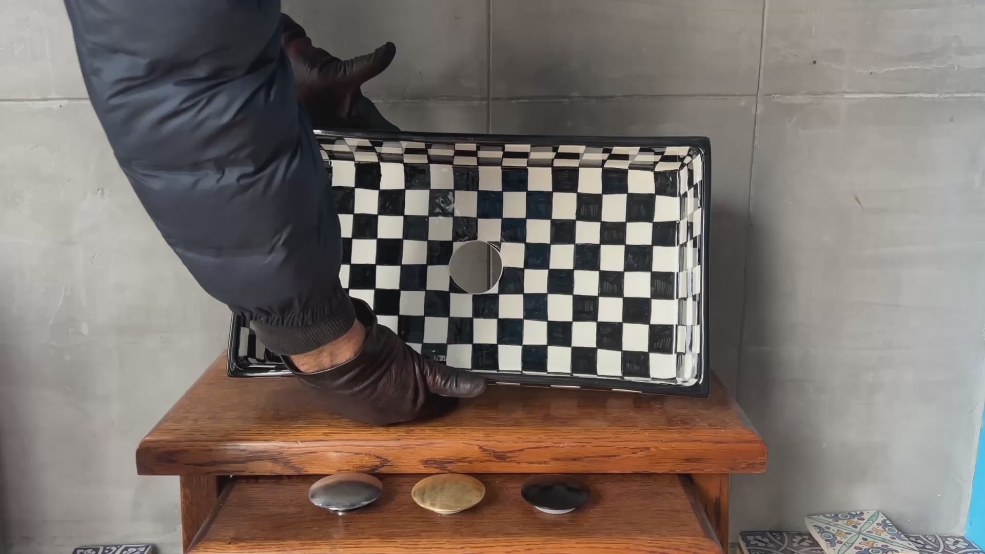 What makes handmade different:Mass-produced sinks have perfectly uniform patterns. With TerraFez, the hand-painted checks vary slightly in size and alignment, creating an organic, artisanal look that proves a human hand created this unique piece.