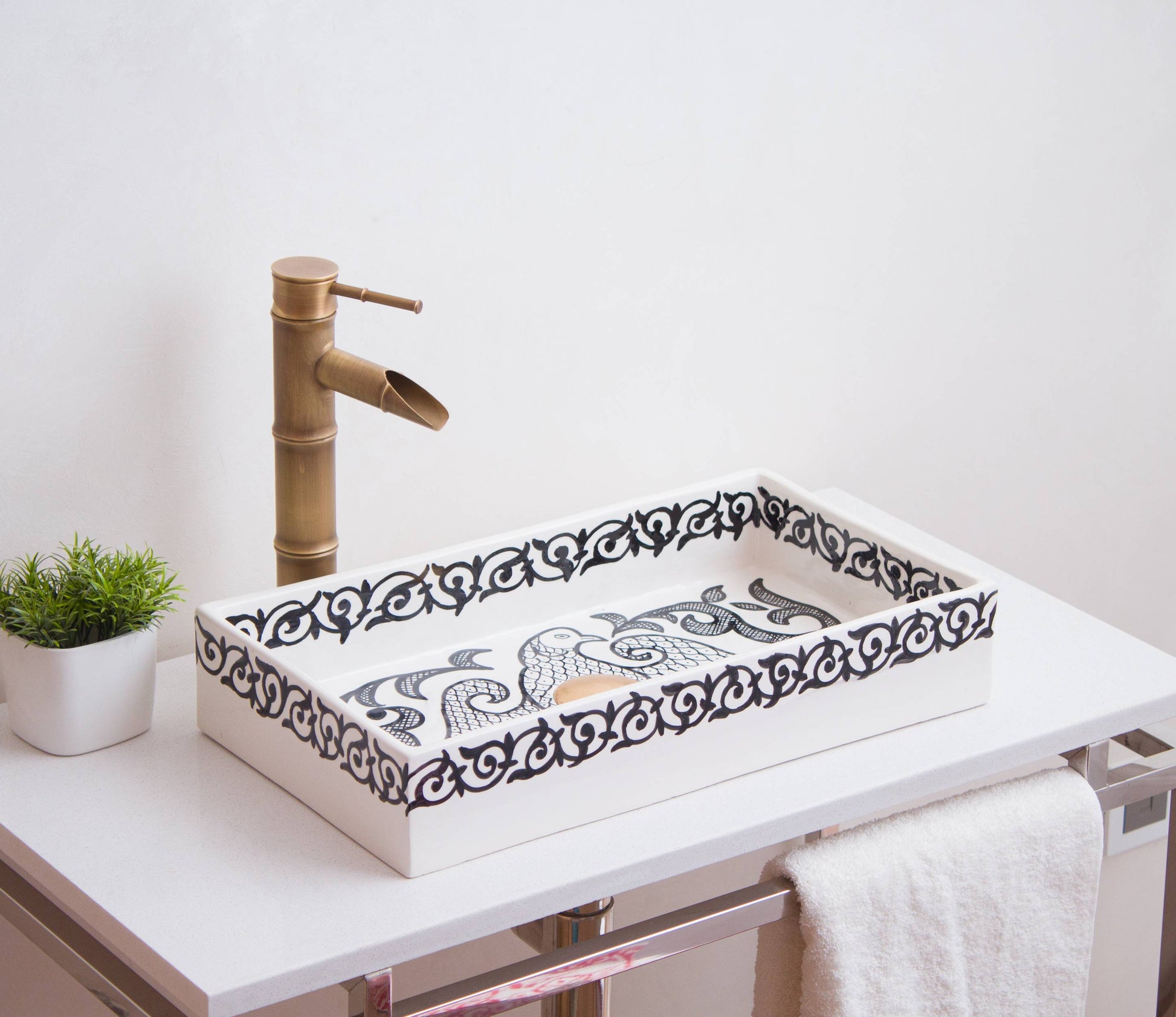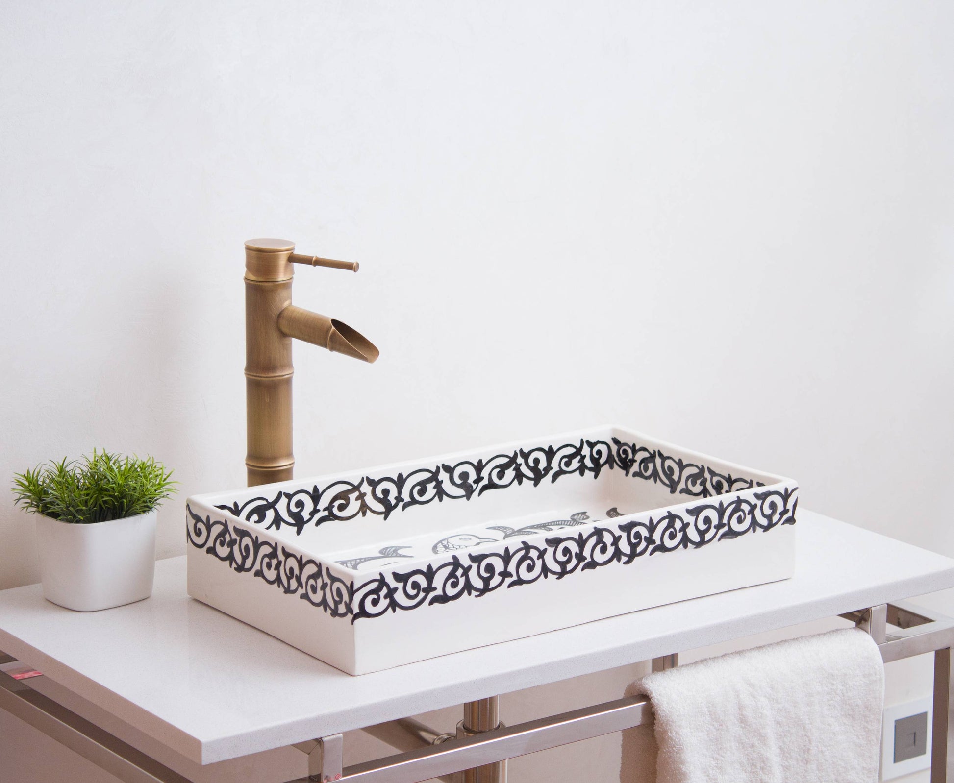 What makes handmade different:Mass-produced sinks can't capture the organic beauty of hand-painted decorative art. With TerraFez, each scroll and feather detail is unique, making your sink a one-of-a-kind piece of functional art.