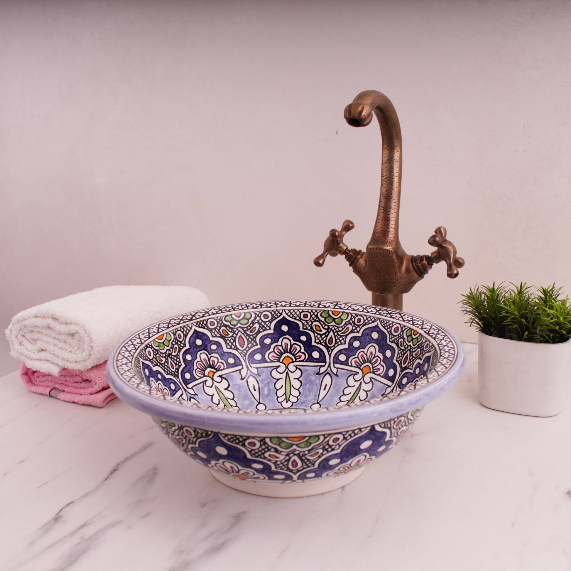 Cosa rende diverso il fatto fatto a mano:I lavabi prodotti in serie non possono catturare la qualità delicata e organica dei fiori dipinti a mano. Con TerraFez, ogni fiore è unico, con variazioni naturali di dimensione e colore che rendono il tuo lavabo speciale.