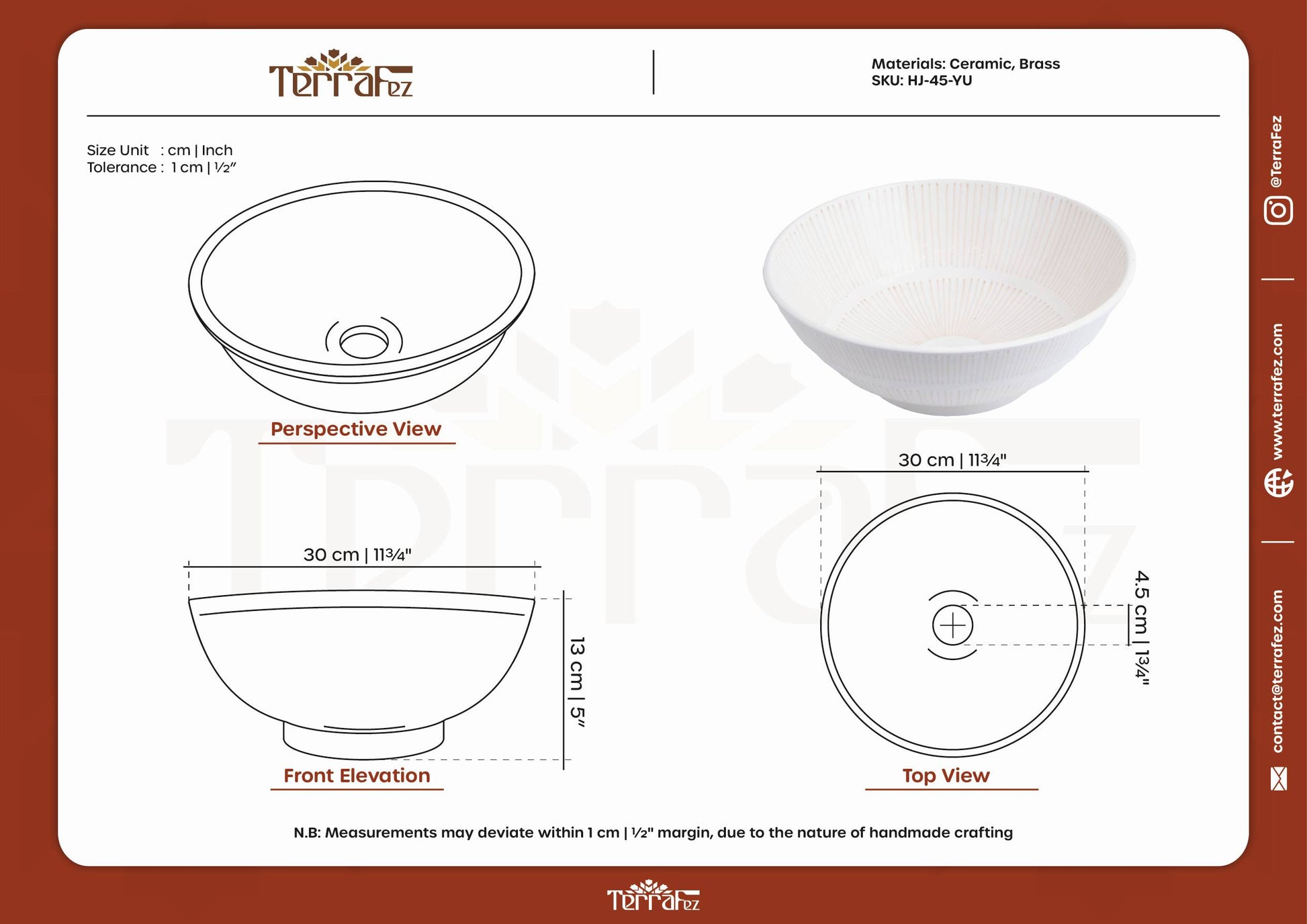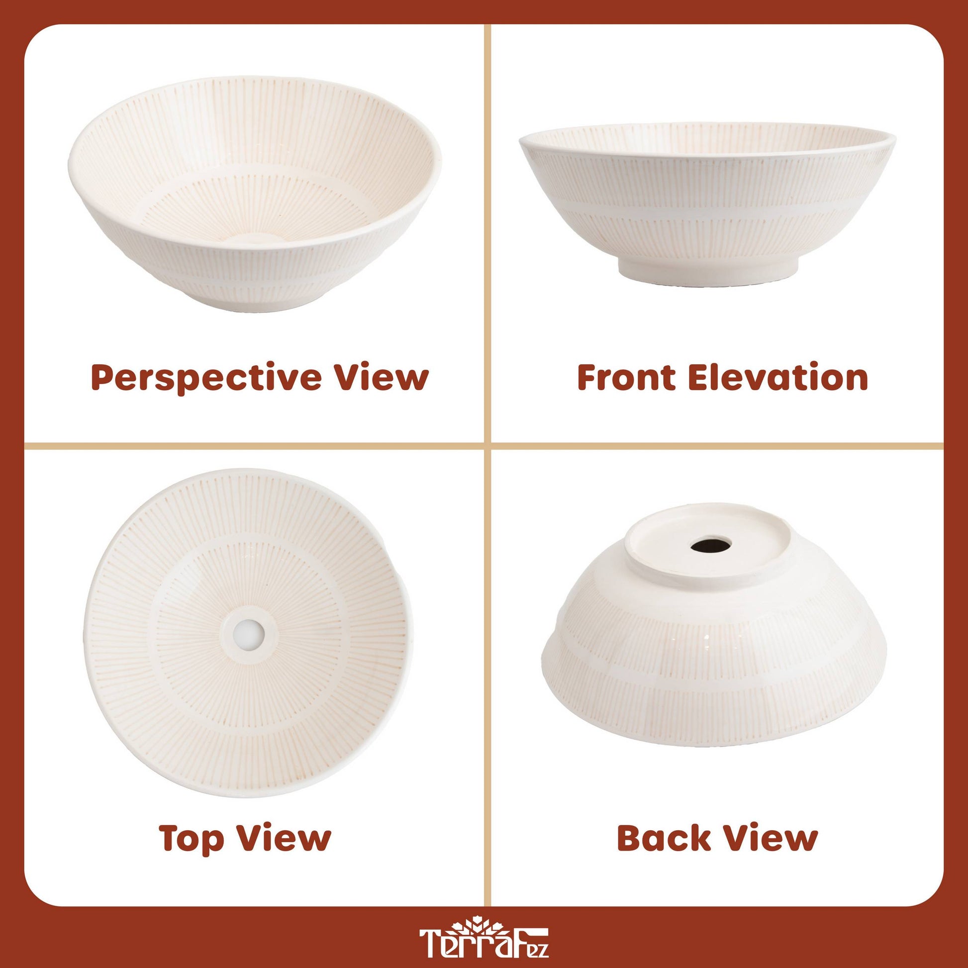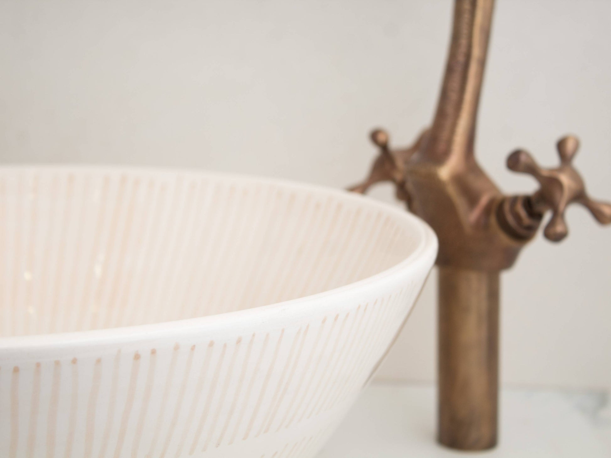 Cosa rende diverso il fatto a mano:I lavandini di produzione di massa mancano delle sotili variazioni di texture che rendono speciali le ceramiche fatte a mano. Con TerraFez, ogni cresta è formata a mano, creando imperfezioni organiche che aggiungono calore al design minimalista.