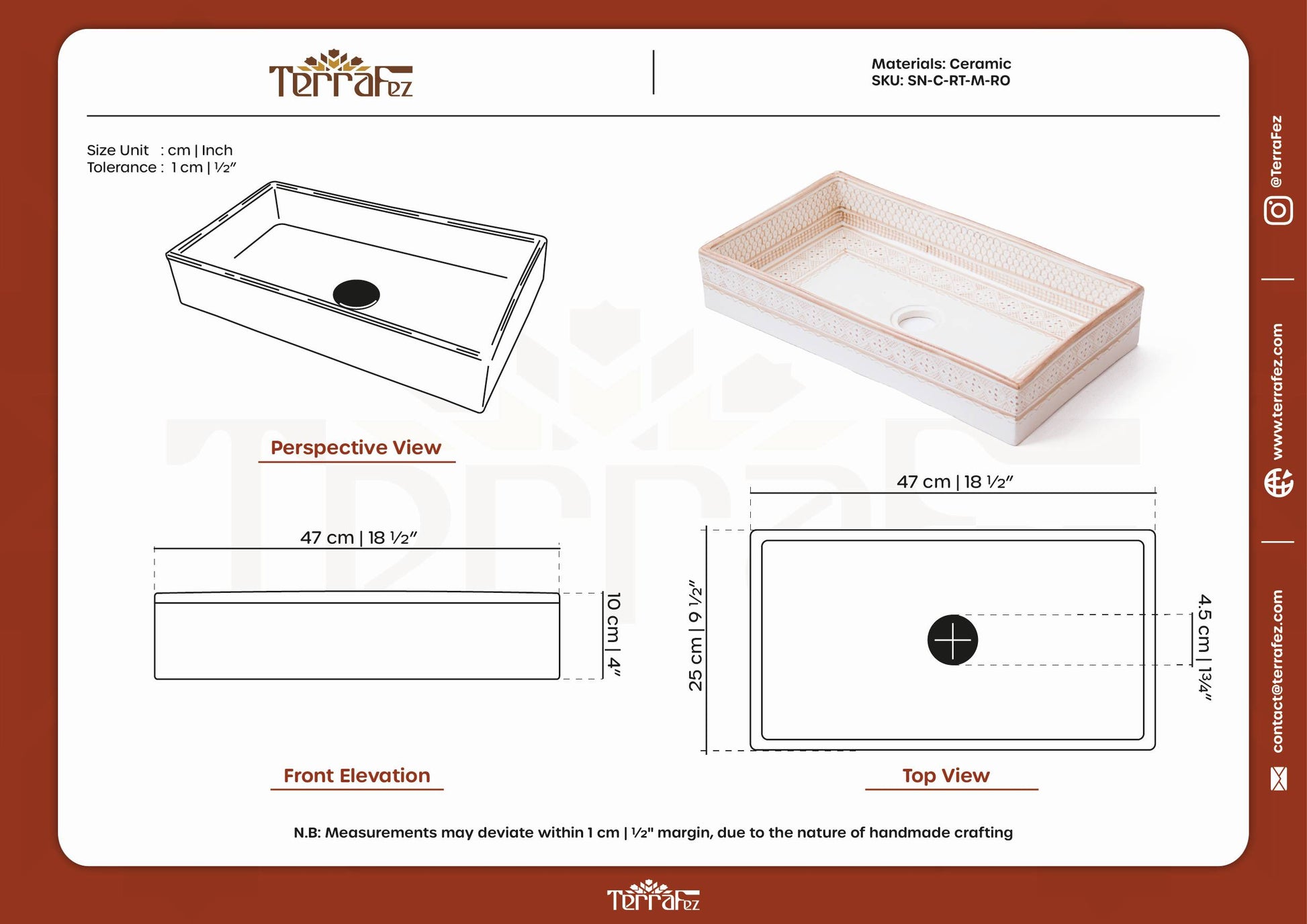 Cosa rende diverso il fatto fatto a mano:I lavandini prodotti in massa hanno colori piatti e uniformi. Con TerraFez, i motivi rosa dipinti a mano mostrano variazioni naturali di tono e intensità, creando un look ricco e stratificato che aggiunge carattere e fascino.