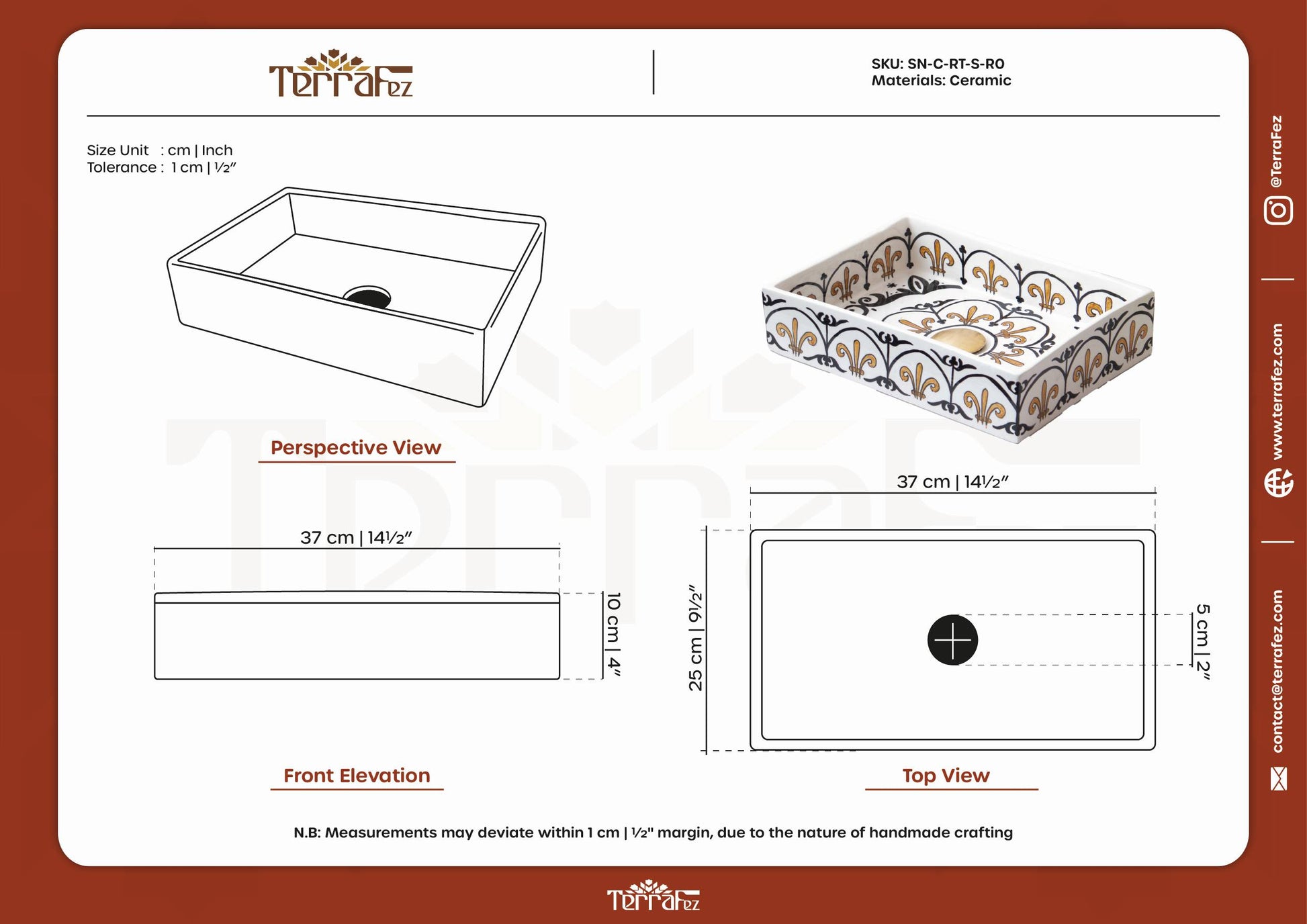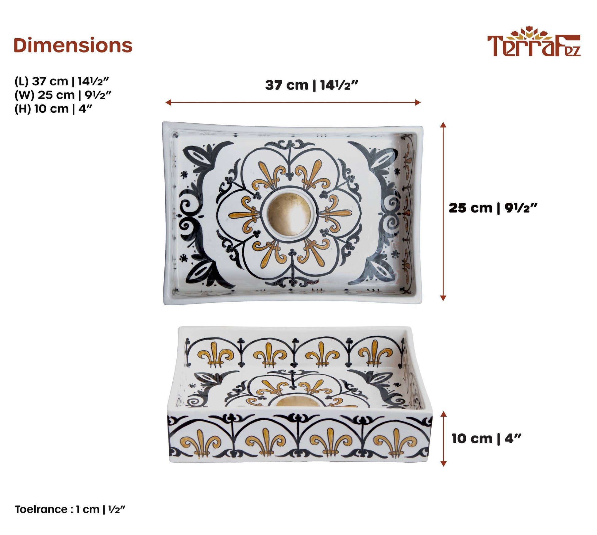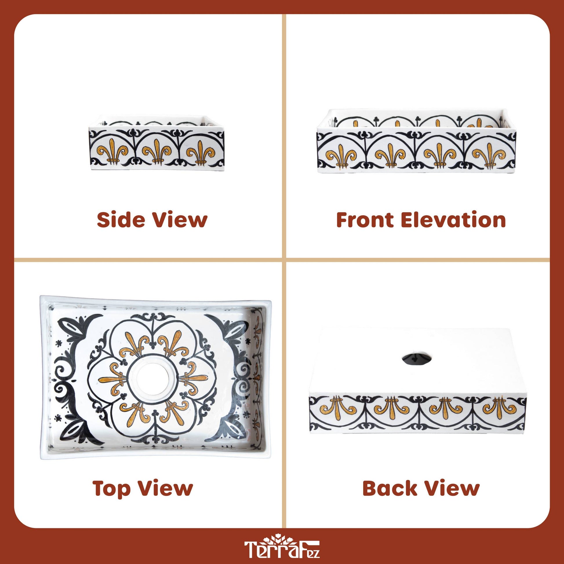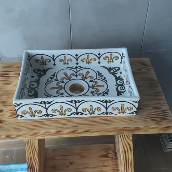What makes handmade different:Mass-produced sinks lack the depth and character of hand-painted ceramics. With TerraFez, each scalloped arch is individually painted, creating organic variations that prove this mini sink is handcrafted.