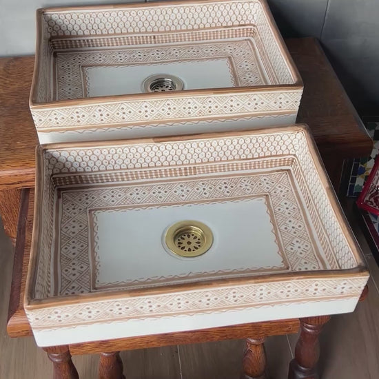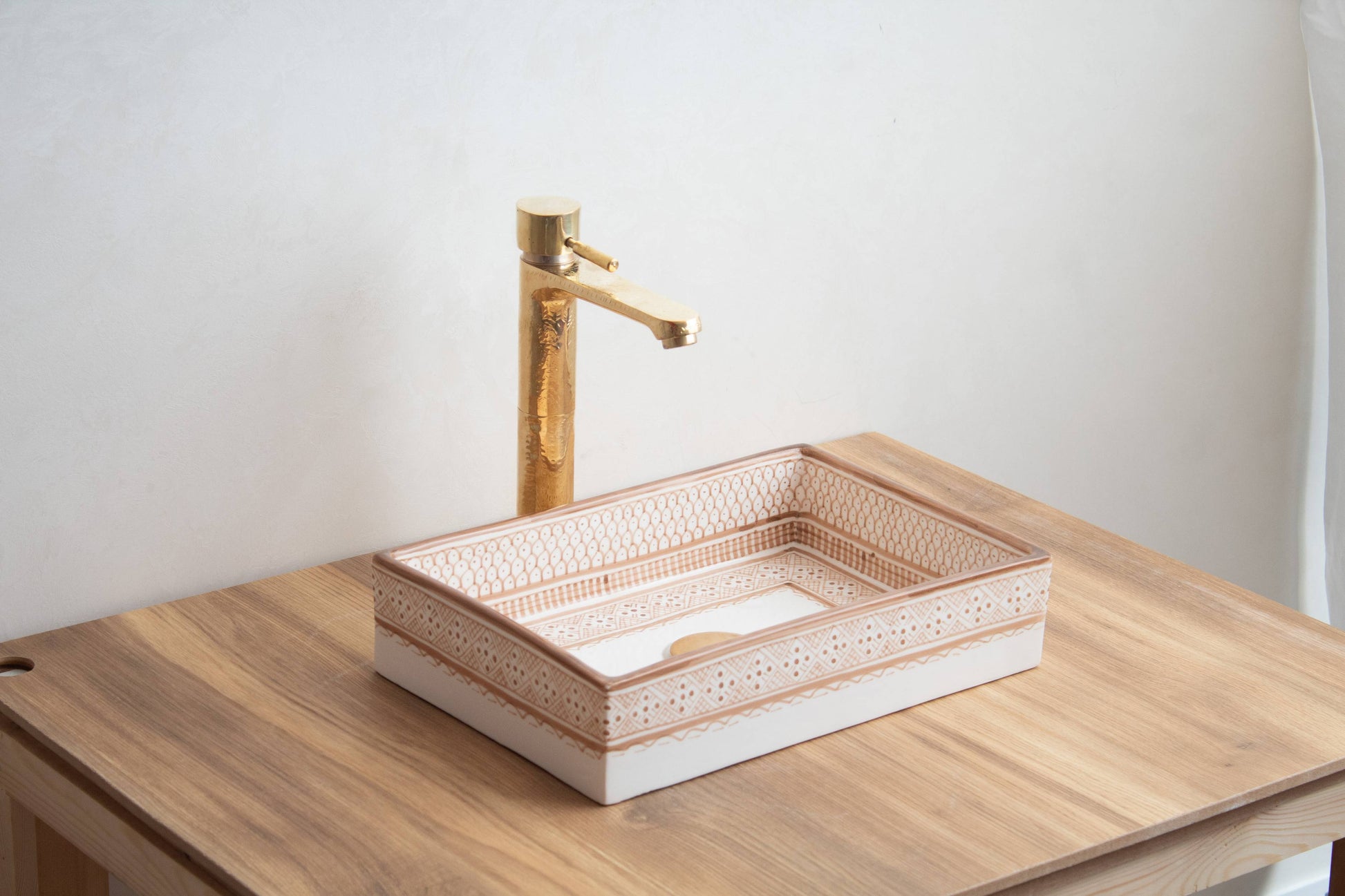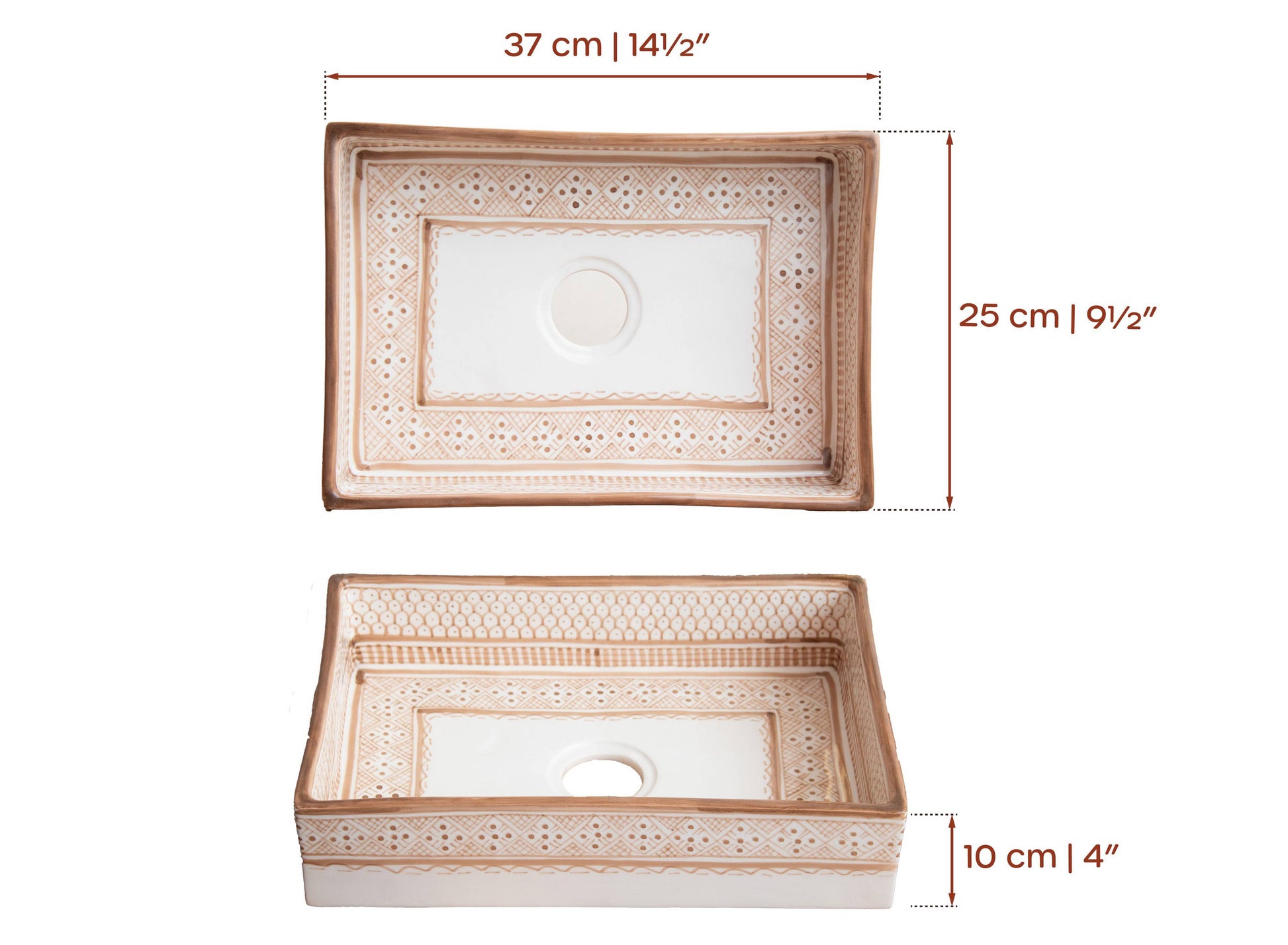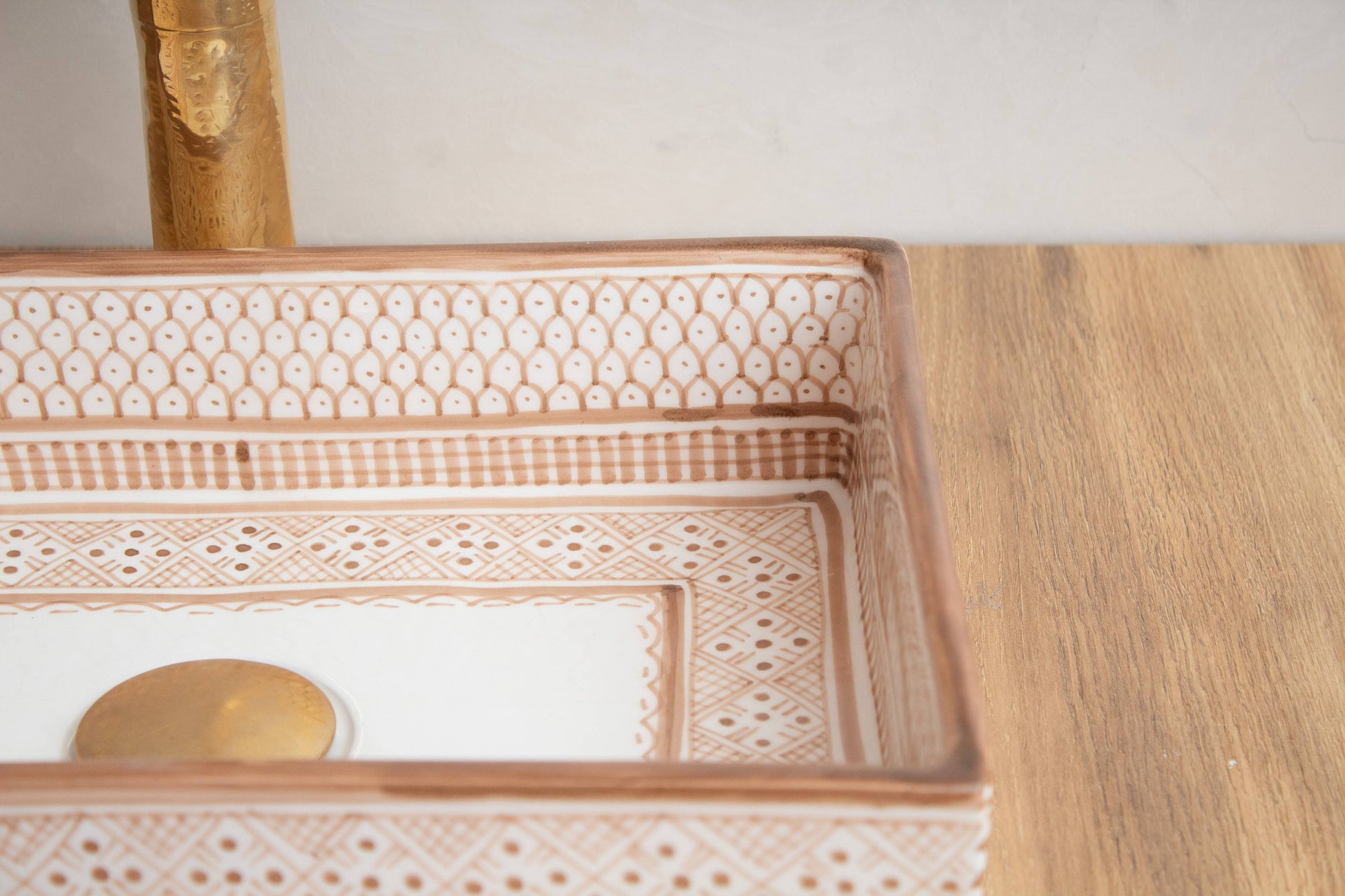 What makes handmade different:Mass-produced sinks have flat, uniform colors. With TerraFez, the hand-painted blush patterns show natural variations in tone and line weight, creating a rich, layered look even in a mini sink.